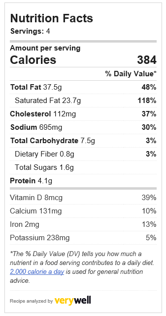 Cal: 384g Fat: 37.5g Protein: 4.1g Total Carbs: 7.5g Net Carbs: 6.7g